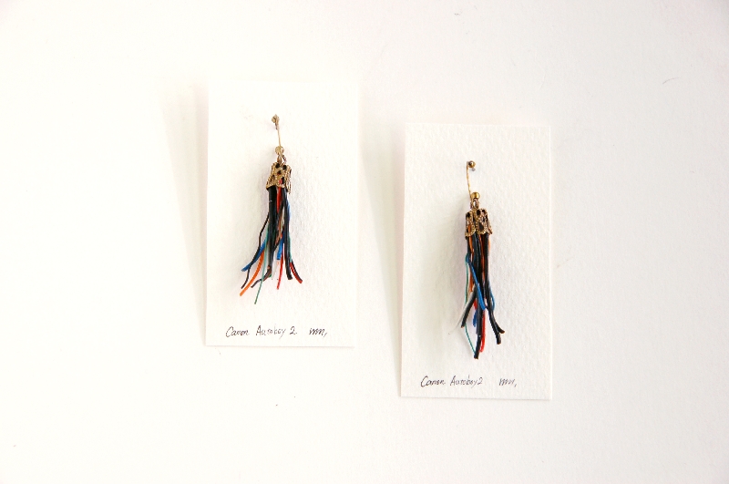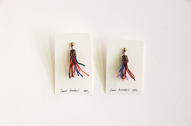 カメラ内の部品を繋ぐカラフルなコードでピアス&イヤリングを作りました。